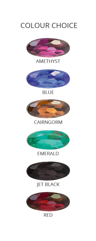 Choose a stone to match a kilt outfit or just pick your favourite colour from these stones - Amethyst, Blue, Cairngorm, Emerald, Jet Black or Red.
