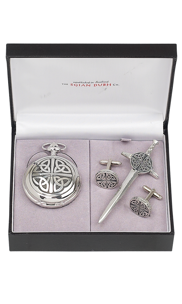 This elegant pocket watch gift set will enhance any kilt or other dress outfit.