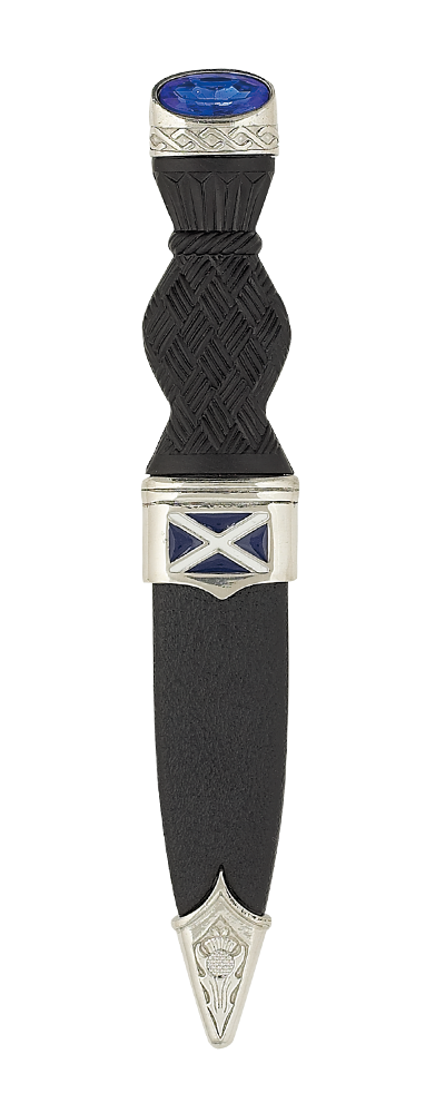 Saltire St. Andrews Enamel Sgian Dubh with Polished Pewter Mounts & Coloured Stone Top.