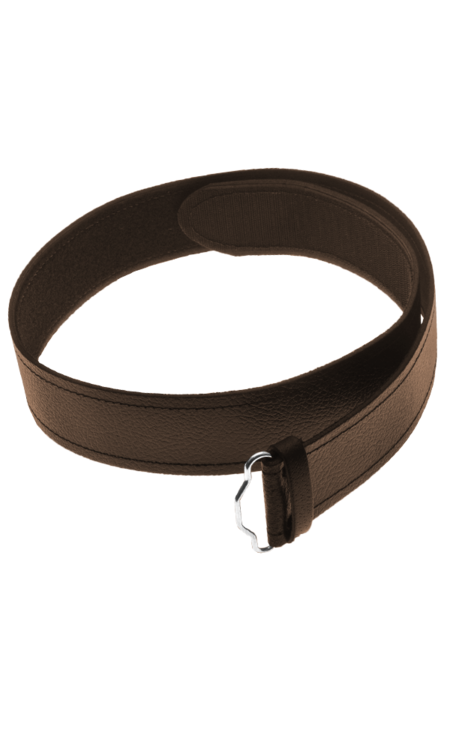 Dark Brown leather belt handcrafted in Scotland from 100% hide leather. Velcro on the back allows size adjustment. Fully stitched edges to avoid splitting with a metal hook at one end to attach to standard kilt belt buckles.